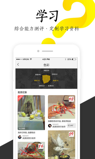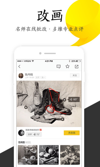 创新性地将传统红笔批改与现代科技结合,支持在画作上直接标注修改建议,同时可录制语音讲解。用户与老师可以像在真实画室一样实时互动,平均每幅作品可获得3-5条针对性改进建议。