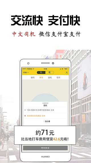 2、中文专车服务:已在日本东京、京都、大阪、奈良等地开通中文快车和接送机服务,配备熟悉当地的中文司机。韩国首尔、台湾地区、美国、加拿大、法国、澳大利亚等地的中文专车服务正在陆续上线,解决游客的出行难题。