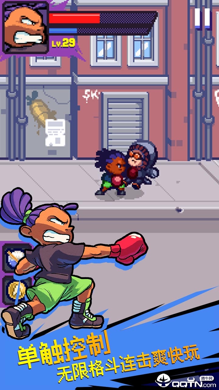 格斗街区手机版是一款热血沸腾的格斗手游,完美融合了街头文化中的赛车竞速、激烈格斗和帮派争霸等元素。在这款游戏中,玩家将化身为街头霸主,在充满挑战的赛道上展现高超驾驶技术,同时还能体验拳拳到肉的格斗快感。游戏采用独特的像素风格设计,搭配丰富多样的场景地图,从繁华都市到荒凉沙漠应有尽有。无论是单人闯关还是双人联机对战,都能带来酣畅淋漓的游戏体验。现在就加入格斗街区,开启你的热血争霸之旅!