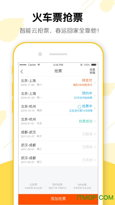 -智能抢票系统采用云端监控技术,支持多车次并行预约、余票实时提醒功能;