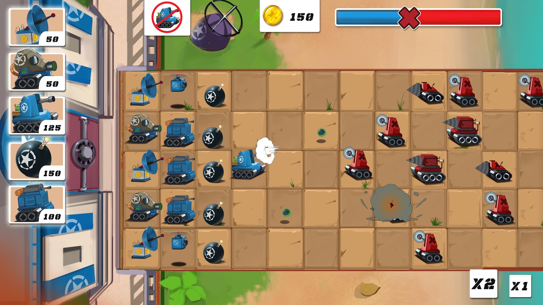 在这款游戏中,"迷你红人"扮演着入侵者的角色,他们企图占领你最重要的军事基地。作为指挥官,你需要率领"小蓝调"军队,运用各种坦克部队来阻止敌人的进攻。游戏考验玩家的战术智慧,要求你根据战场形势选择合适的作战单位。从轻型坦克到重型装甲,每种单位都有其独特的作战特性,只有合理搭配才能发挥最大战斗力。通过精心部署你的防御力量,最终击败"迷你红人"的入侵。