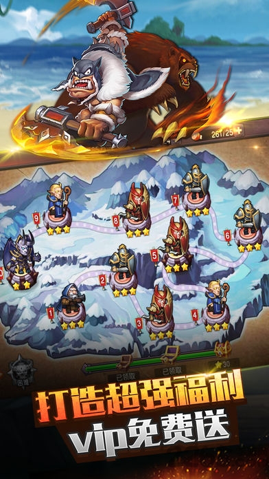 1、创新的自动战斗系统,派出你的英雄小队即可自动作战,解放双手轻松游戏;