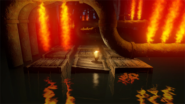 水域区域是第一个难点,第6根蜡烛在对岸平台上。若直接跳跃困难,可推动漂浮的木盖作为垫脚石。最危险的当属第7根,它位于悬崖边缘,稍有不慎就会坠落重来。最后的第8根藏在出口挡板下方,容易被急于通关的玩家忽略。