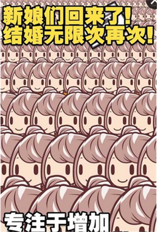 《我的二百亿个新娘》是一款充满创意与欢乐的休闲养成类手游,在这个奇妙的世界里,玩家将开启一段前所未有的新娘收集之旅。游戏延续了前作的奇葩风格,但带来了更加丰富的玩法和内容。通过简单的点击操作,你可以不断解锁各种风格迥异的新娘角色,从可爱萝莉到高冷御姐应有尽有。独特的养成系统让你可以培养出专属于自己的新娘,每个新娘都拥有独特的性格和故事。游戏采用清新明亮的卡通画风,搭配轻松愉快的背景音乐,为玩家营造出一个轻松愉悦的游戏氛围。