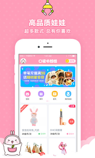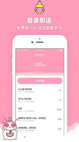 世界那么大,我只想要你!口袋夹娃娃是一款高度还原线下体验的多人在线抓娃娃APP。通过先进的远程控制技术,玩家可以实时操控真实的娃娃机设备,享受与线下无异的抓取体验。平台每天都会更新海量精品娃娃,从热门IP周边到原创设计玩偶应有尽有。成功抓取的娃娃将直接邮寄到家,两件以上更享全国包邮服务。应用支持高清视频直播功能,让你足不出户就能体验真实的抓娃娃乐趣,是宅家娱乐的绝佳选择。独特的社交功能还能让你和好友一起分享抓娃娃的快乐时光。