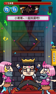 3、游戏采用独特的生命值系统,刺客每次被抓获都会损失一颗心形生命值。作为国王时,需要在刺客举刀行刺的瞬间及时点击屏幕回头查看,成功识破刺杀行动就能将刺客绳之以法。双方角色的操作时机都至关重要,考验玩家的反应能力。
