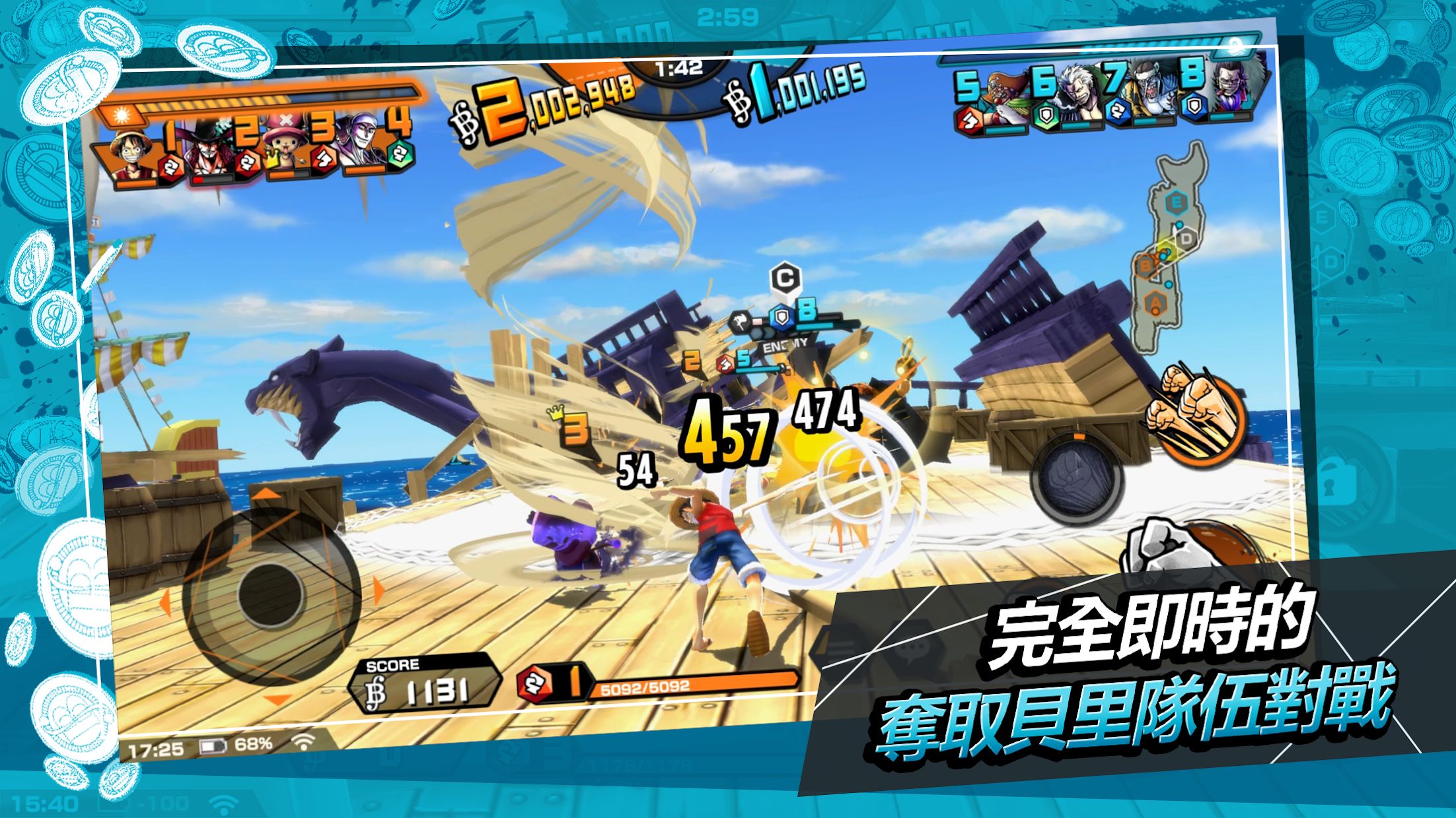 ●游戏中的贝里货币系统极具策略性,每一枚贝里的使用都可能改变战局。作为《航海王》首款4v4团队动作游戏,强调团队配合而非个人英雄主义。玩家需要与队友制定周密的战术计划,在同步进行的激烈对抗中争夺资源,体验前所未有的团队竞技乐趣。