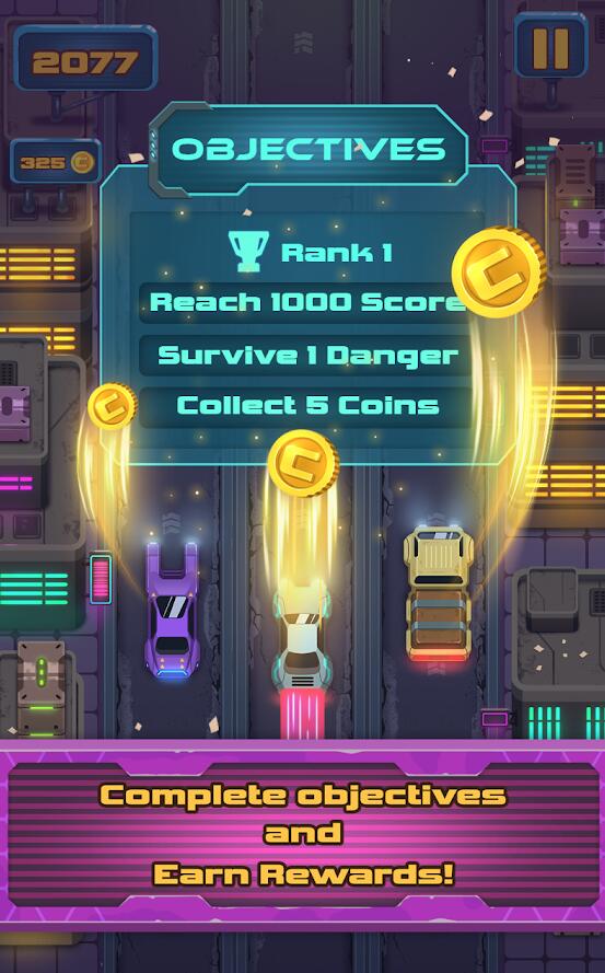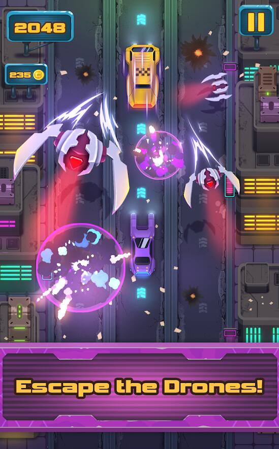 《无人机逃生》将街机风格的赛车玩法与未来科幻元素完美结合,为玩家带来全新的游戏体验。在游戏中,你需要驾驶造型炫酷的未来赛车,在充满科技感的赛道上展开逃亡。通过精准控制赛车的加速与停止,躲避无人机的追击,同时收集硬币解锁特殊道具和升级装备。游戏采用无尽模式设计,考验玩家的反应能力和策略思维。随着游戏进程的推进,赛道难度会逐渐提升,带来更刺激的挑战。独特的排行榜系统让你可以与全球玩家比拼最高分数,争夺冠军宝座。