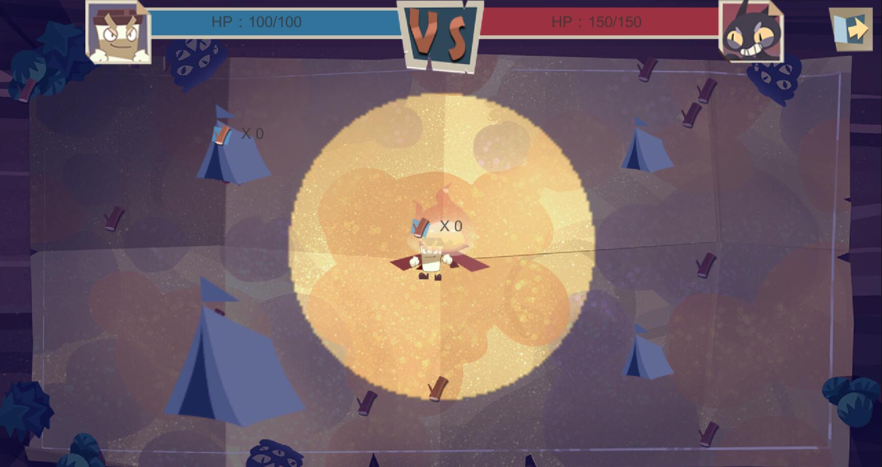 3、资源管理是游戏的关键:咖啡可以通过收集柴火扩大篝火照明范围并获得治疗,但篝火可能被猫踩灭。猫则可以收集柴火加固帐篷获得治疗,但帐篷又可能被咖啡拆除,这种相互制约的机制增加了游戏的策略深度;