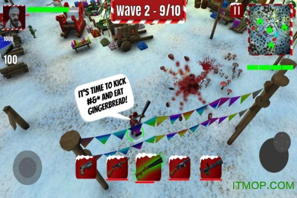 3、不要和众多的坏人硬碰硬,适合采用不同的作战策略,去化解敌方的势力:游戏鼓励玩家运用智慧而非蛮力,可以利用环境设置陷阱,或者借助圣诞老人的特殊道具来智取敌人。