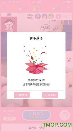 PPP拥有丰富多样的特色玩法,让抓娃娃体验更加精彩。邀请好友和分享朋友圈均可免费送币,让您尽情享受游戏乐趣。游戏采用先进的在线即时抓取技术,通过智能操控系统还原真实抓娃娃机的操作手感,带给您身临其境的游戏体验。我们创新推出了"抓到即送"服务,只要成功抓到娃娃,我们就会为您免费配送到家。更贴心的是,抓到两个或更多娃娃的玩家还能享受包邮优惠。游戏内汇集了当下最热门的网红明星同款娃娃和潮流单品,从可爱萌宠到时尚潮玩应有尽有,满足不同玩家的收藏喜好。无论您是抓娃娃新手还是资深玩家,都能在这里找到属于自己的乐趣。