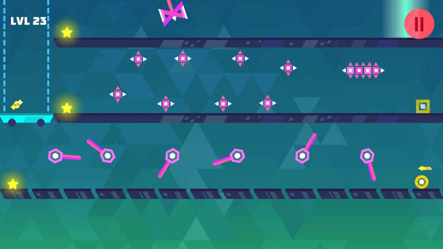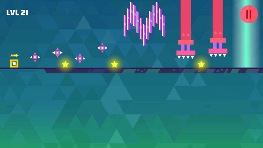 游戏拥有30个精心设计的特色关卡,每个关卡都融入了不同的游戏元素和机关陷阱。清新悦耳的背景音乐与游戏节奏完美契合,为几何逃亡之旅增添更多乐趣。虽然游戏操作简单易上手,但想要完美通关却颇具挑战性。此外,游戏还设置了多种成就系统,鼓励玩家不断突破自我,创造更好的成绩。