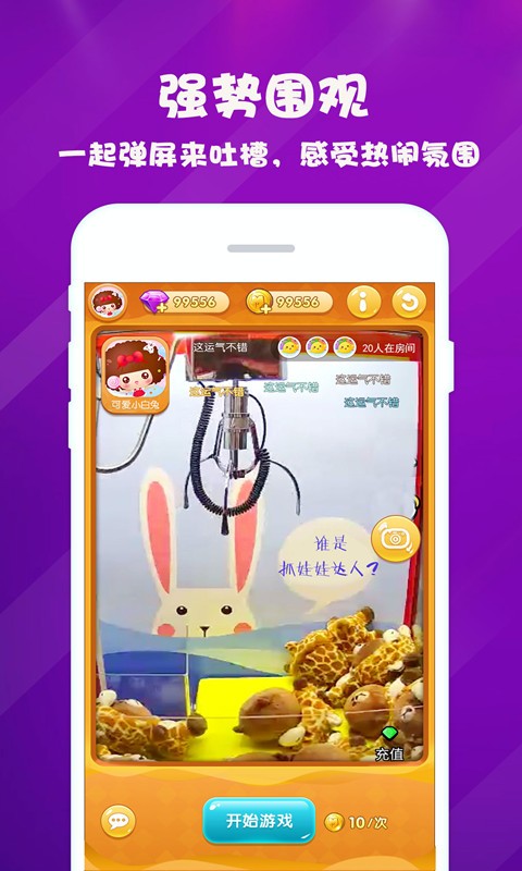 1、远程在线抓娃娃,感受足不出户抓娃娃的新体验;游戏采用最先进的网络传输技术,确保操作实时响应,让你在家也能享受专业娃娃机的乐趣。