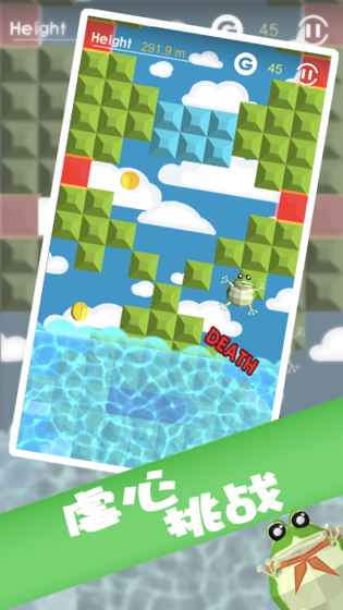 游戏操作简单易上手:点击屏幕时,青蛙会伸出舌头吸附在可停留的平台上;滑动屏幕则能让青蛙借助舌头的弹力将自己弹射到更高处。在跳跃过程中要小心避开各种危险障碍物,比如尖锐物体或移动的敌人,一旦碰到这些危险物或者不幸掉入水中,游戏就会立即结束。特别需要注意的是,青蛙舌头的支撑时间是有限的,如果在一个平台上停留过久,舌头会失去粘性导致青蛙坠落。随着游戏进行,难度会逐渐提升,需要玩家掌握好节奏和时机。