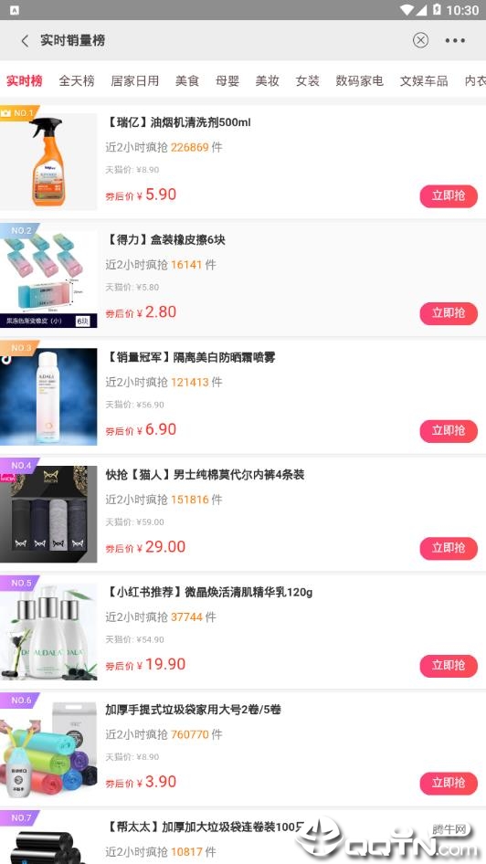 2. 每天更新千万淘宝优惠券,及商品,让淘宝天猫购物更优惠! 专业买手团队24小时监控全网底价,独家爆款清单每日推送。新增"限时疯抢"频道,热门商品额外叠加平台补贴。