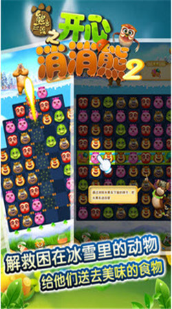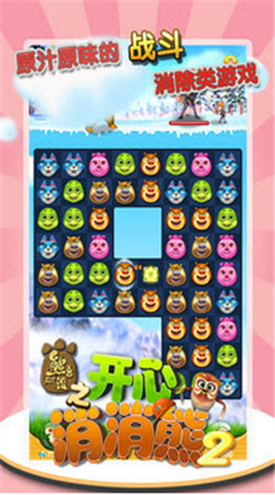 熊出没之开心消消熊2是一款全新升级的消除类手游,游戏以深受小朋友喜爱的"熊出没"动画为背景,完美还原了熊大、熊二、光头强等经典角色形象。在前作基础上,本作大幅扩充了游戏内容,新增了超过200个精心设计的关卡,每个关卡都设置了不同的挑战目标。游戏还创新性地加入了消除战斗系统,玩家需要通过消除来攻击敌人,这种独特的玩法让传统的消除游戏更具策略性和趣味性。此外,游戏还配备了丰富的道具系统,包括炸弹、闪电等特效道具,帮助玩家更轻松地完成关卡挑战。