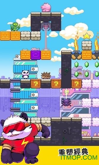 现在熊猫四侠必须找到启明星,准备好与他们一起冒险吧!在超能熊猫侠中尽情地奔跑跳跃,横跨不同的世界,挑战紧张刺激、设计精良的关卡。每个关卡都经过精心设计,难度曲线合理,既能让休闲玩家享受乐趣,也能满足硬核玩家的挑战需求。