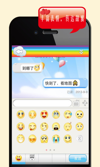 情侣间一对一基于地图位置的亲密聊天,传达甜蜜。聊天界面支持发送位置、共享实时位置,还可以在地图上标注约会地点。特别设计的情侣表情包和爱心特效,让每一次交流都充满浪漫气息。