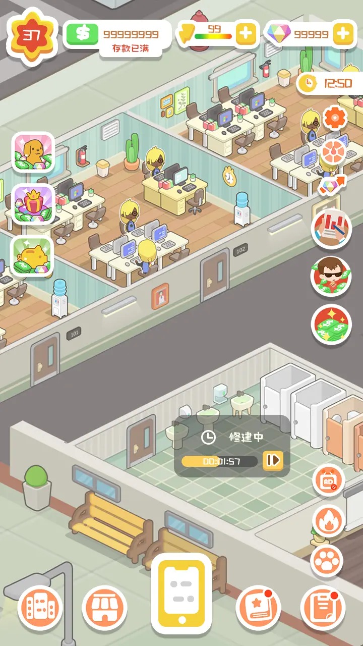 3、随着资产规模扩大,玩家可以解锁摩天大楼、主题公园等高级建筑,逐步从街区开发商成长为跨区域地产集团。通过科技研发提升建筑效率,或聘请专业团队优化管理,持续提升企业竞争力。