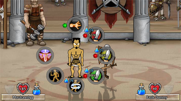 4、你还需要武装你的角斗士,并通过你的才智让他成为这个世界上最伟大的角斗士。用武器,魔法,装甲和技能丰富您的角斗士,他的命运掌握在你强有力的手中,加油吧。游戏提供了丰富的装备系统,从普通铁剑到传奇神器,从皮甲到魔法护甲,玩家可以不断升级装备,打造出完美的战斗机器。