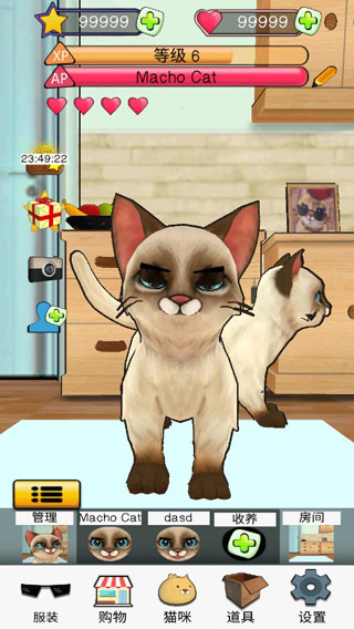 游戏最大的亮点在于其轻松休闲的玩法设计,没有体力限制和等待时间,随时都能享受养猫乐趣。玩家可以收集数百种道具来取悦猫咪,看着它们开心的样子格外治愈。最多可同时领养9只猫咪,每只都有独特的性格和喜好等待玩家发掘。精致的画面表现让每只猫咪都活灵活现,丰富的装扮系统让玩家可以尽情发挥创意。从简单的抚摸互动到复杂的装扮挑战,游戏提供了多样化的体验,满足不同玩家的需求。