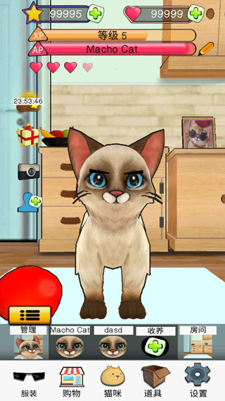 作为一款猫咪养成模拟器,游戏玩法简单易上手但内容丰富。核心玩法是通过照顾猫咪来培养感情,玩家可以下滑屏幕弹出准备好的礼物,用礼物与猫咪互动来提升XP和AP值。游戏设有专门的服装系统,玩家可以使用爱心和星星两种货币购买各种服饰,打造个性化的猫咪造型。商店系统提供了丰富的道具选择,玩家可以购买物品装入箱子,在主界面下滑即可弹出与猫咪互动。随着游戏进程,玩家还能解锁新地图和场景,体验更多有趣的互动内容。
