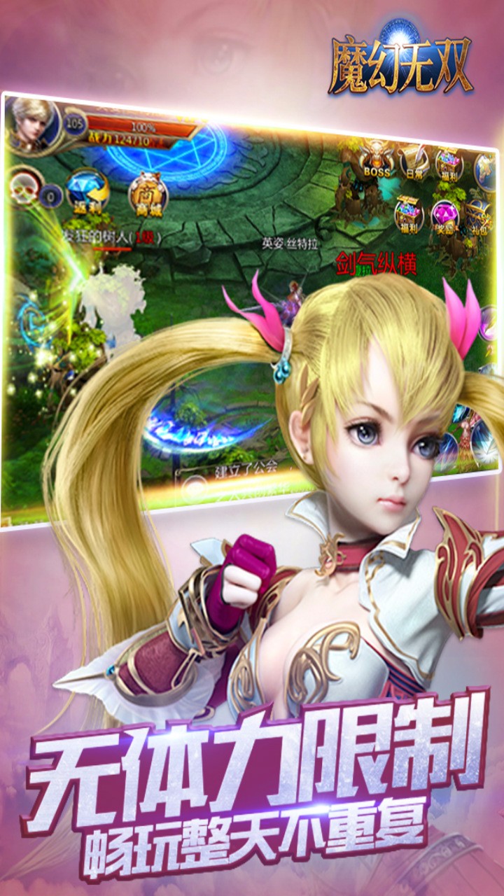 《魔幻无双》果盘版是一款融合欧美魔幻风格与热血格斗玩法的精品手游。游戏以恢弘的上古史诗为背景,通过精美细腻的场景设计和丰富多元的玩法系统,为玩家打造沉浸式的西方魔幻世界。在这里,你可以体验四职业互补的团队对抗、无体力限制的畅爽战斗,还能参与装备打造、跨服竞技、公会争霸等特色玩法。无论是追求战斗快感的硬核玩家,还是喜爱社交养成的休闲玩家,都能在游戏中找到属于自己的乐趣。现在就下载游戏,开启你的魔幻冒险之旅!