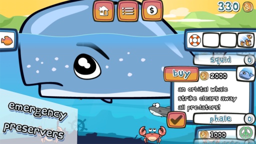 2、海底商店提供50+种装饰道具,收集的硬币不仅能购买新角色,还能解锁迷你水族馆。救生员道具包含氧气罩和声波驱鱼器,合理搭配能创造生存奇迹。