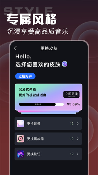 1、采用极简主义设计理念,操作界面直观友好,新用户也能快速上手。一键播放功能让音乐触手可及,无需复杂设置即可享受高品质音乐,真正做到即点即播,让音乐陪伴每个重要时刻。