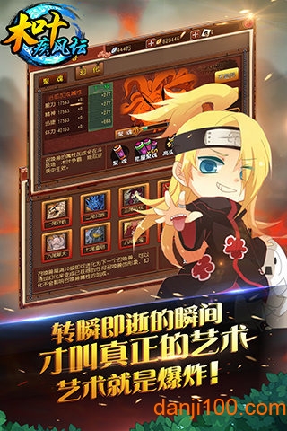 木叶疾风坛无限金币版是一款以经典动漫为题材的Q版忍者手游。游戏采用清新可爱的卡通画风,完美还原了众多人气角色形象。在这里,你可以体验到简单易上手的操作方式,感受炫酷华丽的技能特效,参与热血沸腾的格斗对决。游戏不仅拥有丰富的PVP竞技玩法,还创新性地加入了独特的忍者招募系统。无论是单人冒险还是团队作战,都能让你享受到最纯粹的忍者世界乐趣。现在就前往单机100手游网下载体验吧!