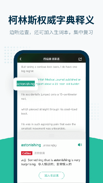 采用智能断句技术将长篇文章分解为单句训练单元,支持无限次重复播放。独创的"刮刮卡"提示功能会在三次尝试失败后自动显示文本,避免学习卡顿。跟读模式配备AI语音评分,复述模式则通过填空练习强化记忆,两种模式交替使用可显著提升短期记忆转化率。