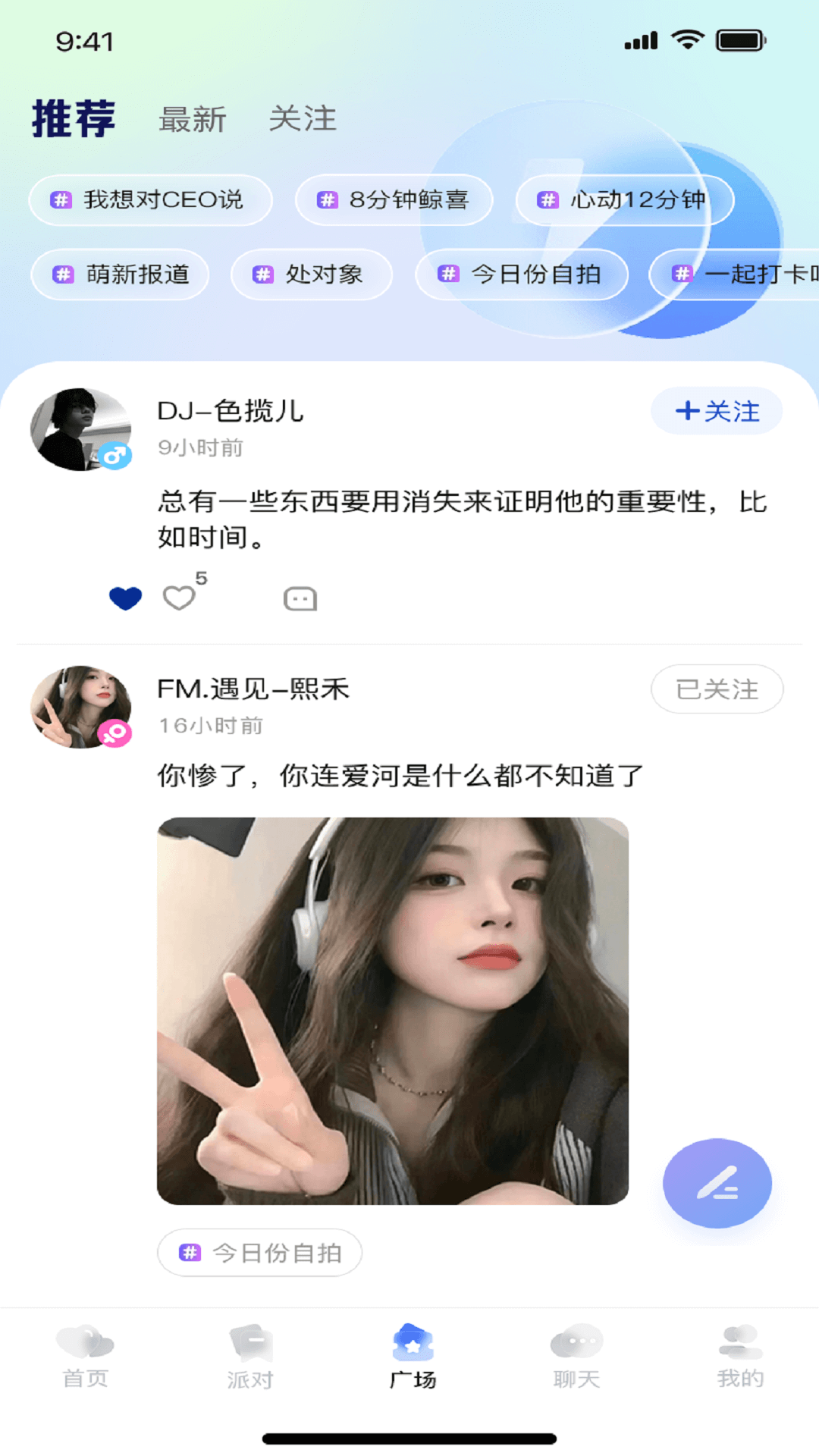 2、动态广场支持发布高清图片、长视频和定位打卡,完善的标签系统和智能推荐算法,让你的精彩内容能精准触达兴趣相投的观众群体。