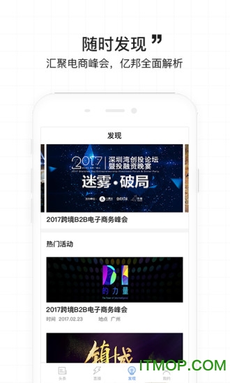 发现:全年近50场的热门电子商务峰会,资深专业大咖讲堂,亿邦专属峰会发布;每场峰会都提供完整视频回放和精华笔记下载,错过直播也能随时补课学习。