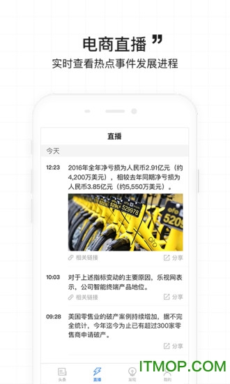 头条:随时随地,多角度,聚合报道零售、国际、品牌、跨境电商等20个频道的行业热点要闻;新增"热点追踪"功能,自动梳理事件发展脉络,帮助用户快速掌握来龙去脉。