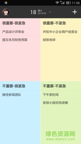 1.主要界面采用了四象限的形式。按照重要紧急程度把事情分成了四类。这种直观的展示方式让用户一眼就能分辨出哪些任务需要优先处理,哪些可以稍后完成,大大提升了决策效率。