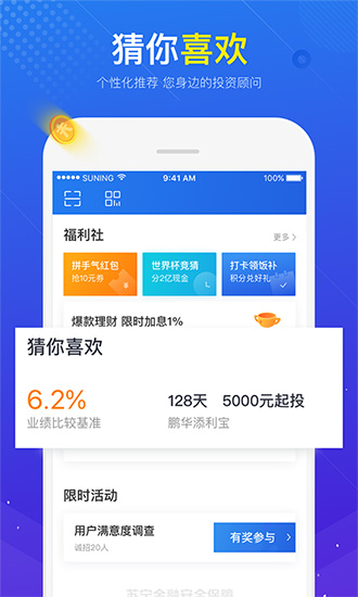 苏宁金融是一款功能强大的移动金融服务平台,致力于为用户提供全方位的理财与生活服务解决方案。作为一款集支付、理财、借贷、保险等功能于一体的综合性金融APP,它不仅支持资金管理、手机充值等基础服务,还能满足用户投资理财、消费分期等多样化需求。依托苏宁集团强大的线上线下资源,该平台整合了供应链金融、消费信贷等创新业务,为用户打造安全便捷的一站式金融服务体验。无论是日常消费支付还是长期财富规划,苏宁金融都能提供专业可靠的解决方案。