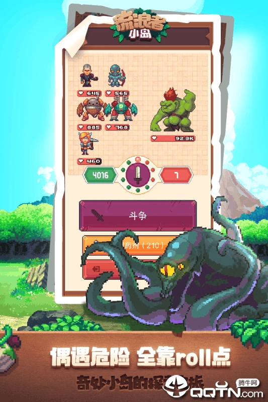 战斗详解:战斗前记得为队员装备锻造的武器,铁质武器相比木质能提升50%伤害。当队伍中有治疗特长的角色时,可减少80%的药水消耗。面对强力怪物时,先派防御型角色吸引仇恨,再让输出型角色集中攻击。
