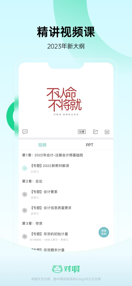 【听视频课】系统梳理会计职称考试大纲,持续更新高质量视频课程。名师授课逻辑清晰,知识点层层递进,课程按章节科学划分,单节课时控制在高效学习时长。支持多种学习场景:可离线下载缓存视频,自由选择标清/高清画质,适配电视投屏学习,开启后台播放功能实现边听边记,贴心夜间模式保护视力,让学习时间更加灵活自由。