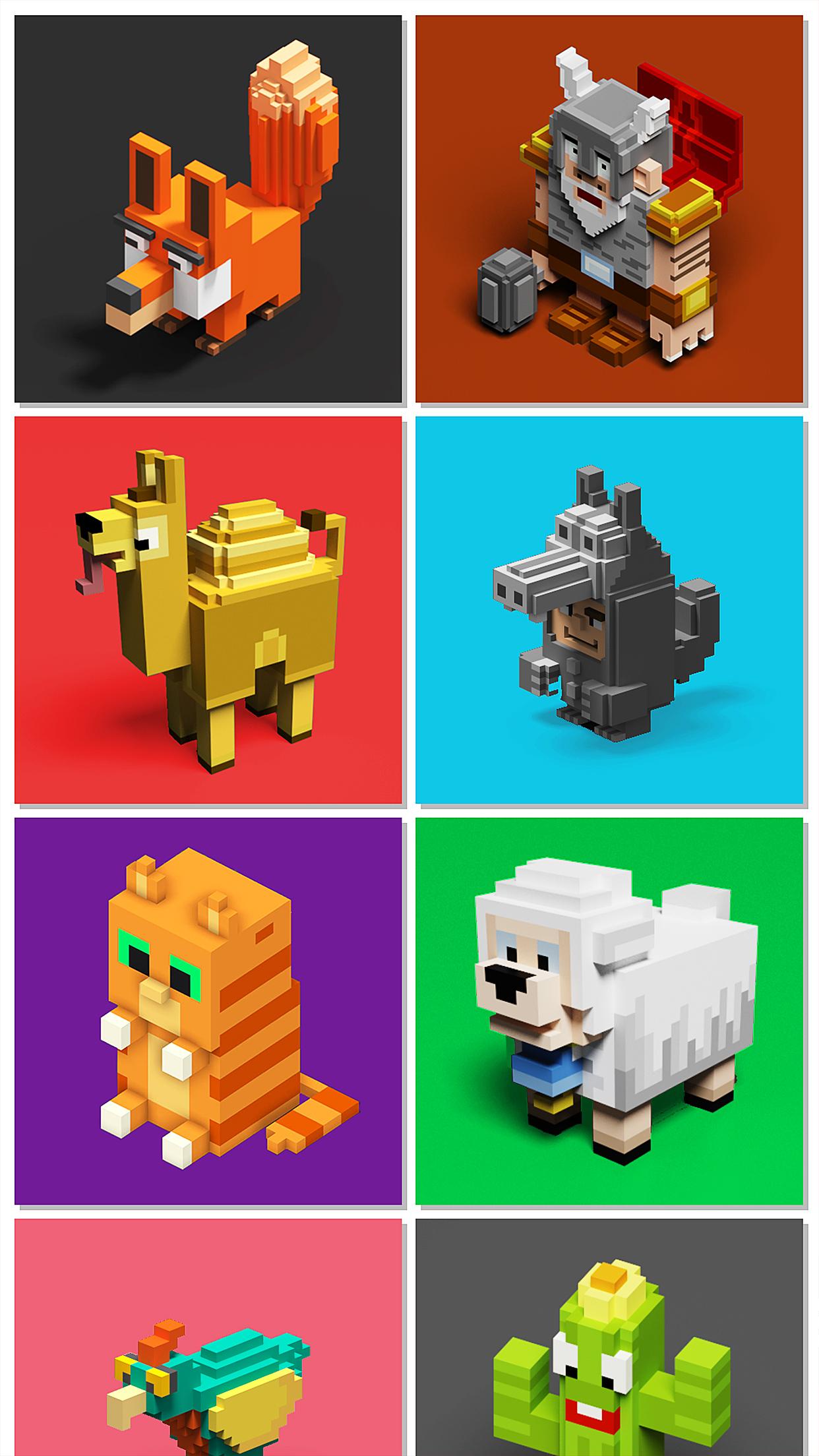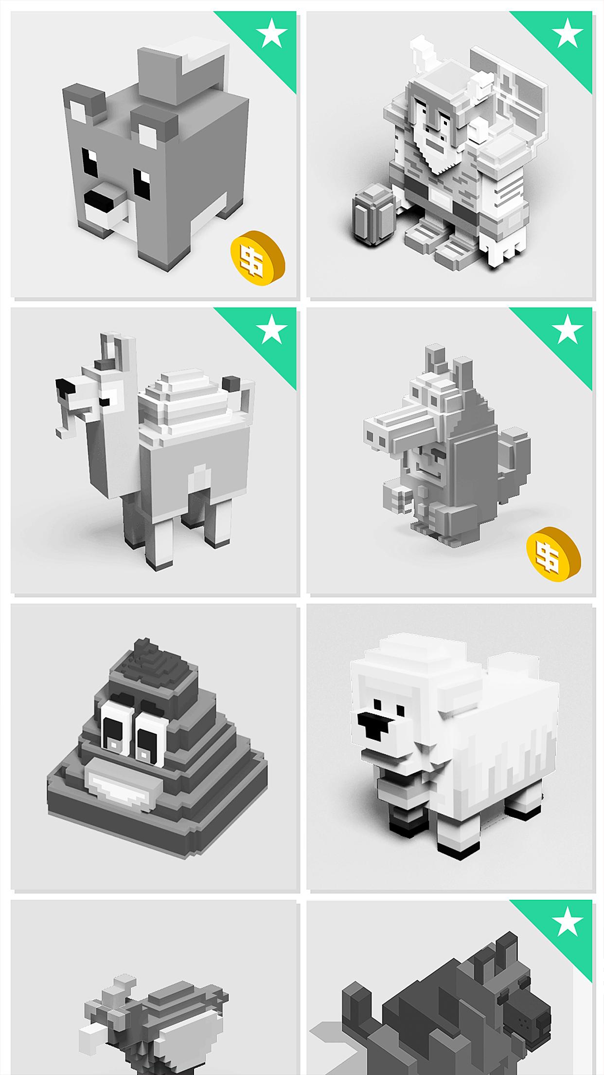 1、各种三维体素:独角兽,公主,恐龙,跑车等上百种模型持续更新,每月新增主题系列;