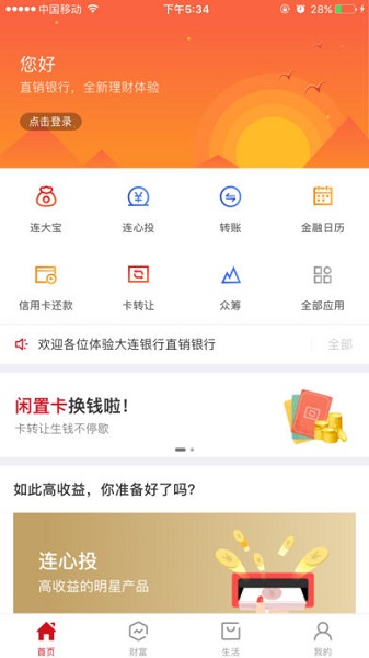 首页设计简洁明了,集成了账户管理、转账汇款、金融日历等常用功能入口。用户可以快速查看最新金融资讯和银行公告,连大宝、连心投等特色产品一目了然。智能推荐系统会根据用户使用习惯优化功能排序,提高操作效率。同时支持指纹/面容识别等生物认证技术,确保账户安全的同时提升使用便捷性。