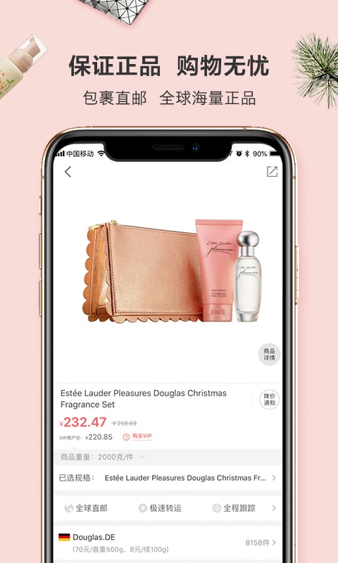 一键直达美国亚马逊、日本亚马逊、维多利亚的秘密等50多个海外官网,全中文操作界面支持支付宝、微信等本地支付方式。一个账号即可买遍全球,无需反复注册,购物流程简单快捷。平台还提供实时汇率换算和价格对比功能,让您轻松找到最划算的商品。