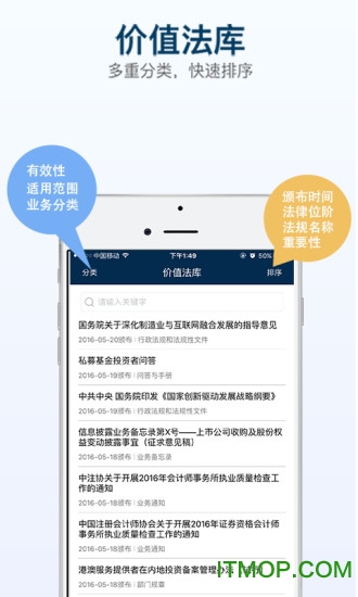 5.证券市场相关法规,可在移动设备上随时查看,包含智能检索、重点标注和版本对比等实用功能。
