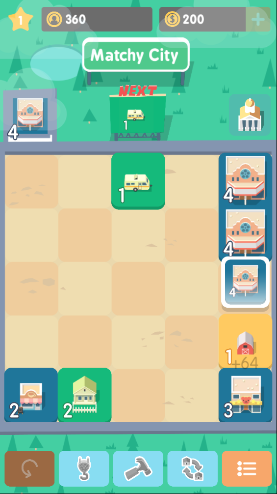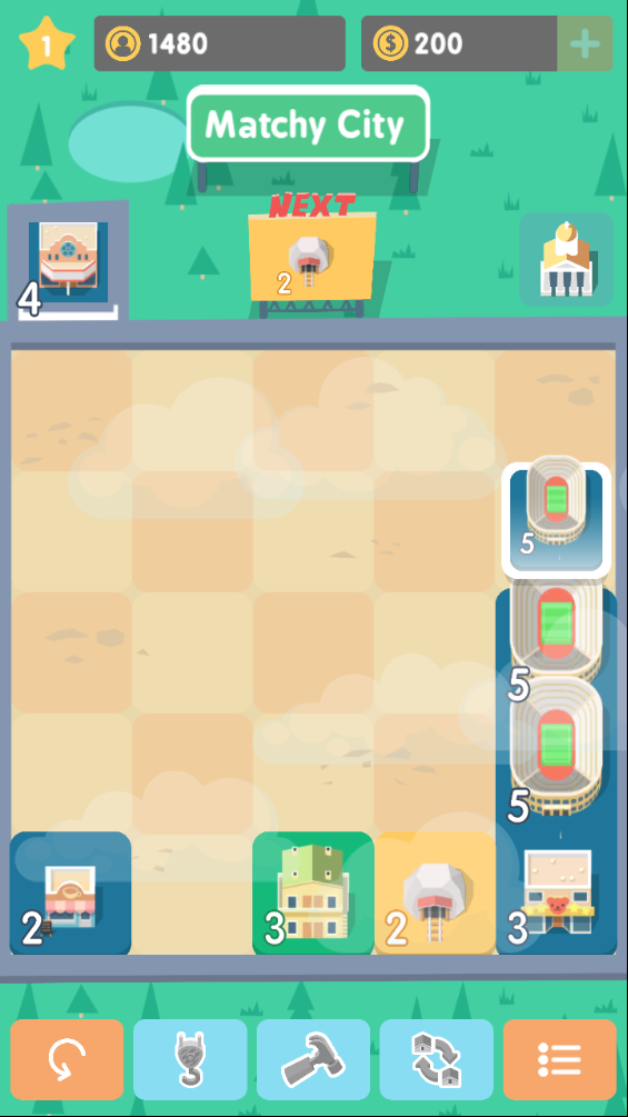 游戏操作简单直观:只需上下左右滑动屏幕即可移动建筑瓷砖。特别注意只能移动浮动的瓷砖,固定位置的建筑无法被移动。当同一条直线上出现3个相同等级的建筑时,滑动将它们合并就能创造出更高一级的新建筑。随着游戏的进行,你需要不断优化合并策略,因为棋盘空间有限,而建筑会随着合并变得越来越有价值。游戏还设置了多种特殊建筑类型和随机事件,为传统的2048玩法注入了更多变数和乐趣。每次游戏都能带来不同的城市发展路径,让你体验独一无二的建设历程。