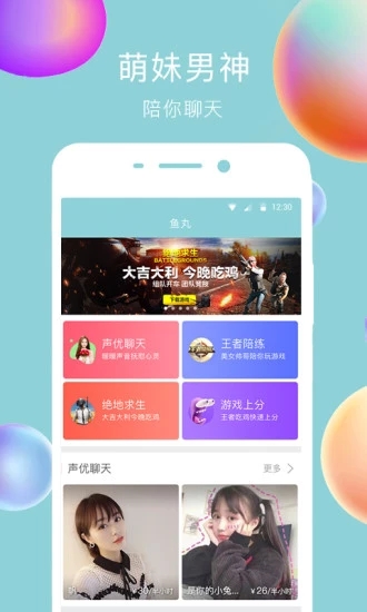 闲来鱼丸App是一款专为游戏爱好者打造的社交娱乐平台,让玩家告别单机孤独,享受多人互动的乐趣。在这里,你可以轻松找到志同道合的伙伴,无论是组队开黑还是语音聊天,都能获得双倍快乐。平台汇聚了各类游戏大神和声优达人,提供丰富的技能服务,满足你的娱乐需求。界面简洁易用,功能强大实用,是游戏玩家不可或缺的社交神器。快来下载体验,开启你的欢乐时光吧!