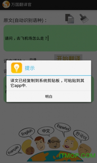 万国翻译软件是一款功能强大的多语言互译工具,支持27种语言的即时翻译,满足用户多样化的语言需求。软件采用简洁直观的界面设计,操作简单便捷,即使是初次使用也能快速上手。无论是日常交流、学习还是工作场景,万国都能提供高效的翻译服务。用户只需轻松复制粘贴文本,即可实现一键翻译,大大提升跨语言沟通的效率。此外,软件还具备自动识别语种的功能,让翻译过程更加智能流畅。欢迎前往IT猫扑下载体验这款实用的翻译工具。
