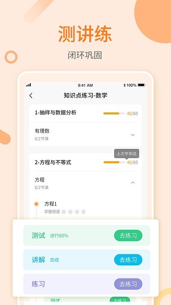 1、独创的TLE循环提升学习法贯穿整个学习过程,通过精准诊断、靶向训练、效果评估的闭环系统,确保每个知识短板都能得到有效弥补,显著提升学习效率。