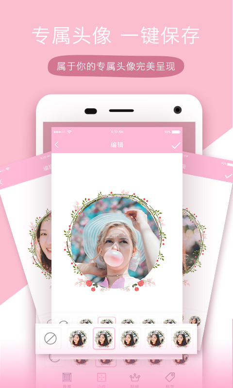 *提供海量头像装饰贴纸,强迫症数字、VIP标志、超萌贴纸、萌趣恶搞表情等等;还可自定义添加哦!软件内置超过1000种贴纸素材,每周都会更新最新潮流的贴纸元素,让你的头像永远走在时尚前沿。