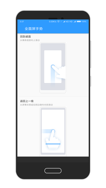 1、上滑回到桌面:只需从屏幕底部轻轻上滑,即可快速返回主界面,操作过程流畅自然,没有任何延迟感。相比传统虚拟按键,手势操作更加符合人体工学设计。