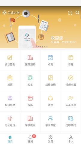 校园新闻、通知、日程,智能推送重要信息,支持个性化订阅和提醒设置;