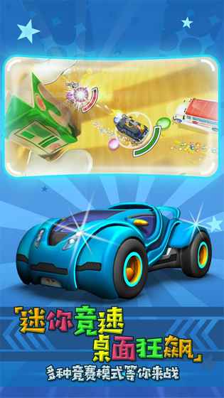 5、迷你竞速,桌面狂飙,多种竞速模式等你来战:包含计时赛、淘汰赛、道具赛等7种不同玩法,总有一种适合你的风格。